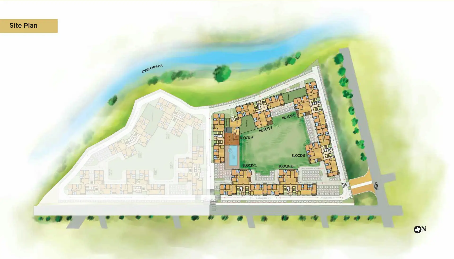 With 70 percent open space and over 480 trees, greenery will surround every moment. Amenities will include a clubhouse, AC gym, kids splash pool, theatre, party lawn, and more. Thoughtfully designed zones for yoga, meditation, toddlers, and elders will bring balance to everyday living.